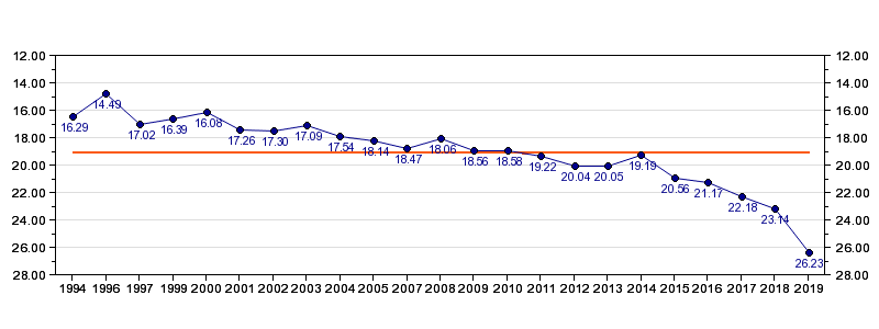 | Antall deltagelser | 23 (i perioden 1994 - 2019) |