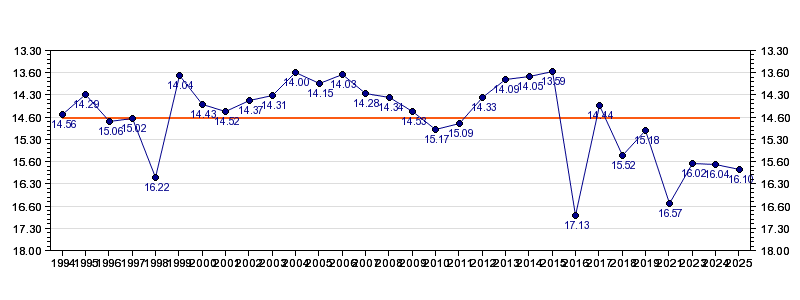 Antall deltagelser30 (i perioden 1994 - 2025)