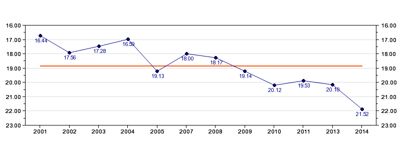 | Antall deltagelser | 12 (i perioden 2001 - 2014) |