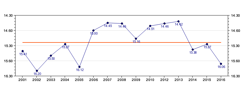 | Antall deltagelser | 15 (i perioden 2001 - 2016) |
