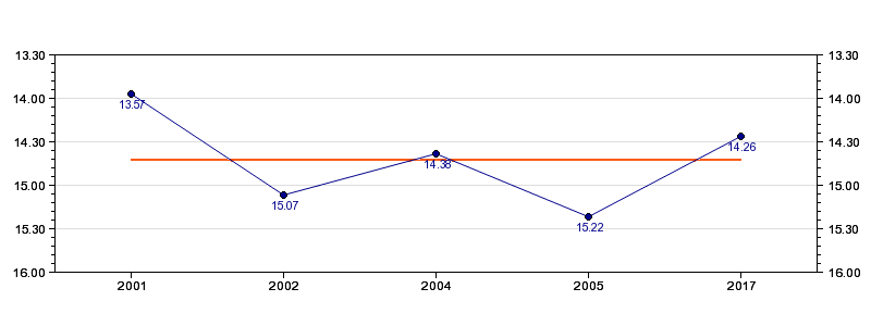 | Forrige tid | 14.26 (2017) |