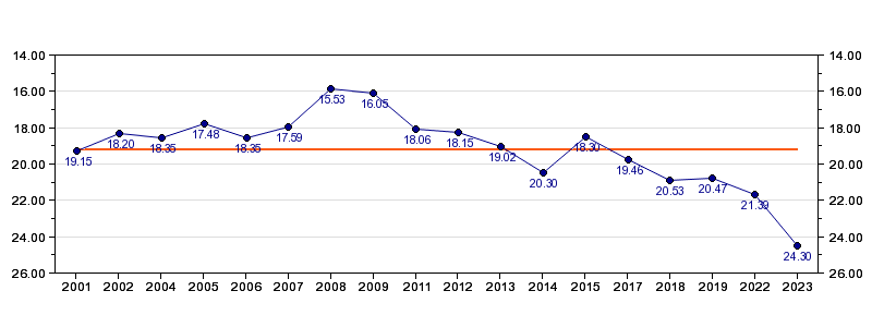 Antall deltagelser18 (i perioden 2001 - 2023)