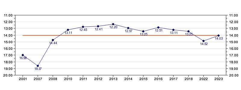 | Antall deltagelser | 14 (i perioden 2001 - 2023) |