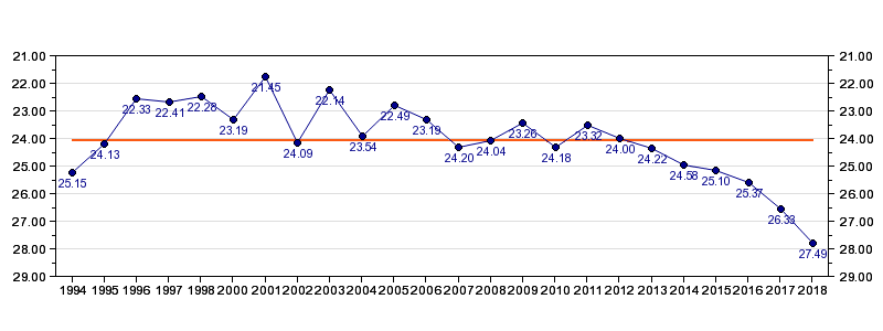 | Forrige tid | 27.49 (2018) |