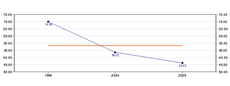 Antall deltagelser3 (i perioden 1994 - 2025)