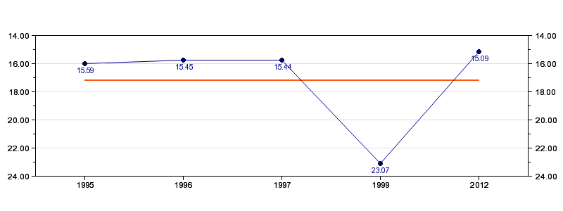 Antall deltagelser5 (i perioden 1995 - 2012)