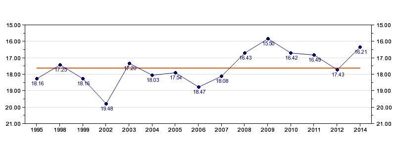 Antall deltagelser15 (i perioden 1995 - 2014)