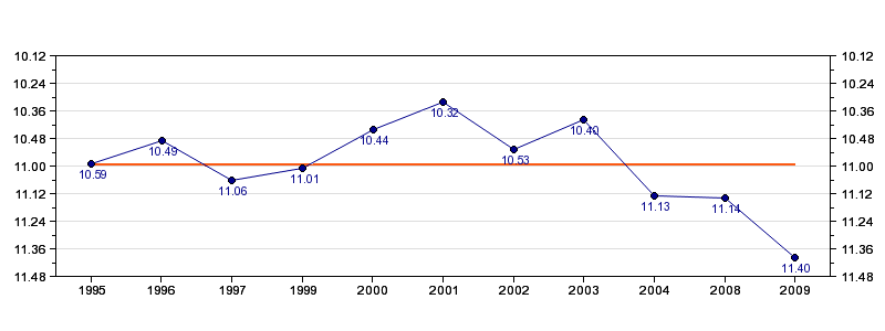 | Antall deltagelser | 11 (i perioden 1995 - 2009) |