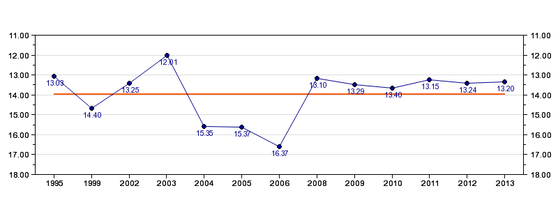 Antall deltagelser13 (i perioden 1995 - 2013)