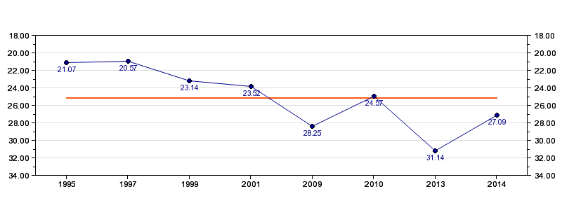 Antall deltagelser8 (i perioden 1995 - 2014)