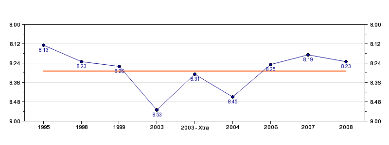 | Forrige tid | 08.23 (2008) |