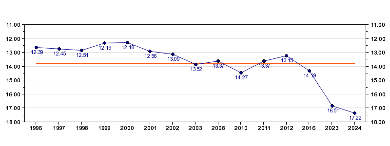 | Forrige tid | 17.22 (2024) |