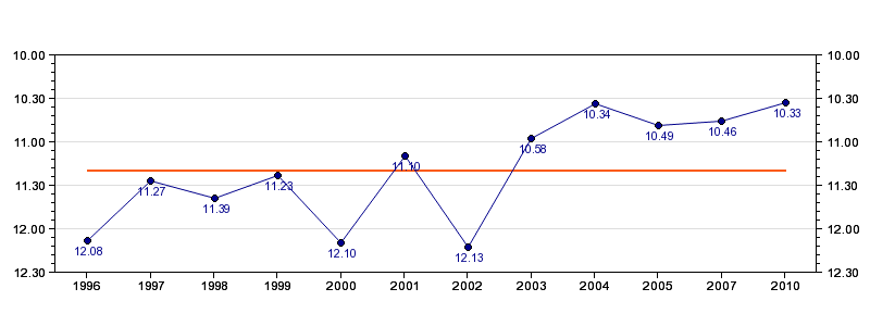 Antall deltagelser12 (i perioden 1996 - 2010)