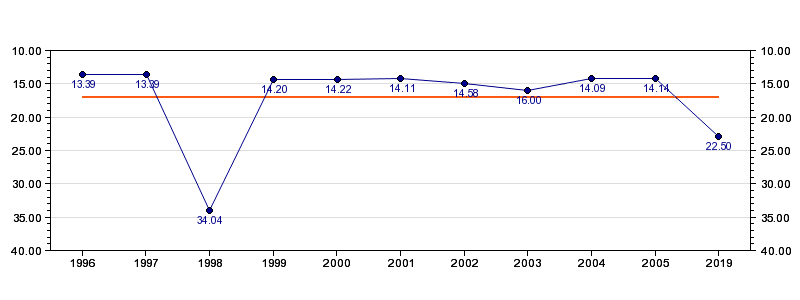 Antall deltagelser11 (i perioden 1996 - 2019)