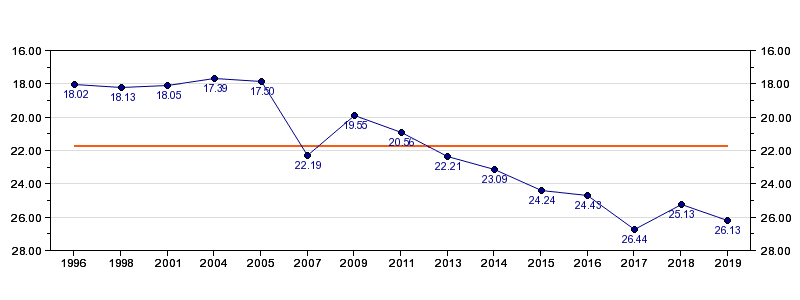 | Forrige tid | 26.13 (2019) |