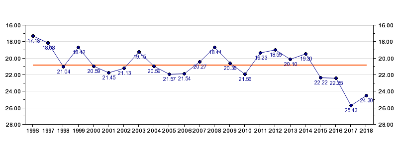 | 2018 | Kalkulator | 24:30 (738 m/h) | 04:07 (784 m/h, 106 %) | 11:34 (07:27, 738 m/h, 100 %) | 21:24 (09:50, 697 m/h, 94 %) | 24:30 (03:06, 805 m/h, 109 %) |
