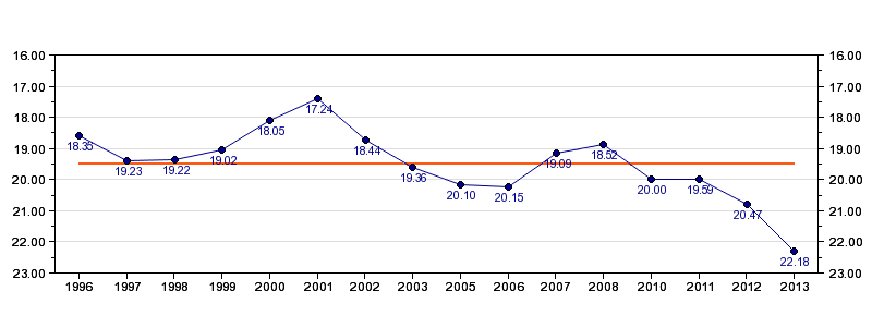 2013Kalkulator22:18 (810 m/h)03:25 (944 m/h, 116 %)10:01 (06:36, 833 m/h, 102 %)19:09 (09:08, 750 m/h, 92 %)22:18 (03:09, 792 m/h, 97 %)