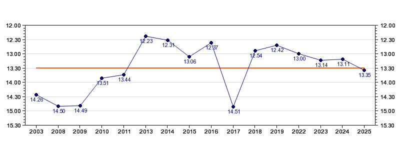 | 2022 | Kalkulator | 13:00 (1391 m/h) | 02:22 (1363 m/h, 97 %) | 06:28 (04:06, 1341 m/h, 96 %) | 11:32 (05:04, 1353 m/h, 97 %) | 13:00 (01:28, 1701 m/h, 122 %) |