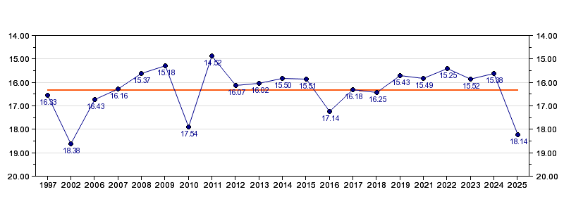 | 2025 | Kalkulator | 18:14 (991 m/h) | 02:45 (1173 m/h, 118 %) | 07:47 (05:02, 1093 m/h, 110 %) | 16:20 (08:33, 802 m/h, 80 %) | 18:14 (01:54, 1313 m/h, 132 %) |