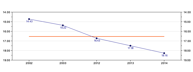 | Forrige tid | 18.16 (2014) |