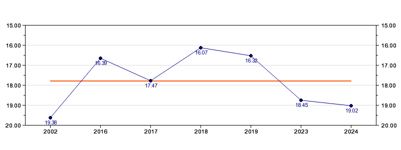 | Antall deltagelser | 7 (i perioden 2002 - 2024) |