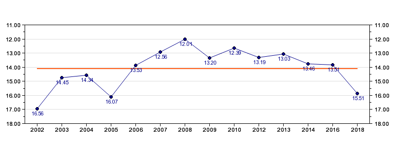 Antall deltagelser14 (i perioden 2002 - 2018)