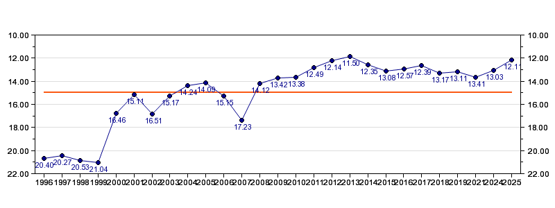 Antall deltagelser27 (i perioden 1996 - 2025)