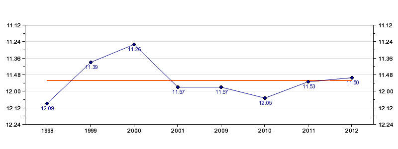 | Forrige tid | 11.50 (2012) |
