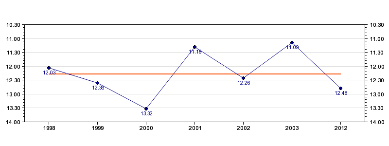 Antall deltagelser7 (i perioden 1998 - 2012)
