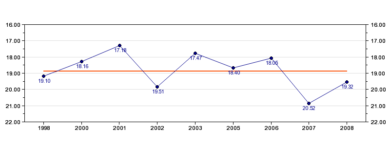 Antall deltagelser9 (i perioden 1998 - 2008)