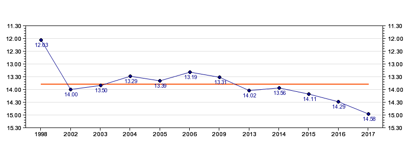 Antall deltagelser12 (i perioden 1998 - 2017)