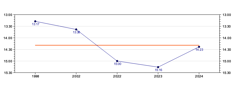 Antall deltagelser5 (i perioden 1998 - 2024)
