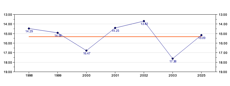 Antall deltagelser7 (i perioden 1998 - 2025)