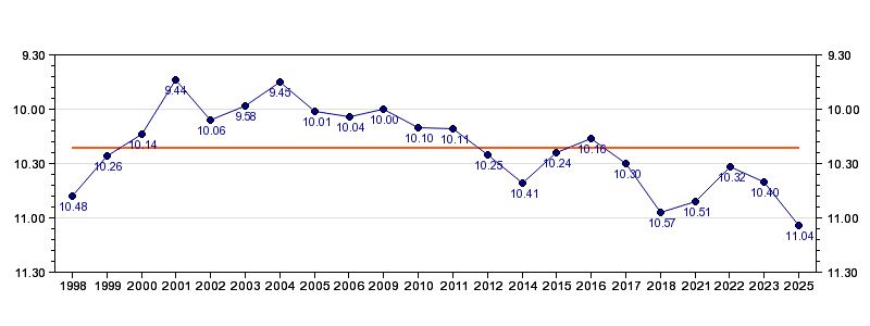 | Forrige tid | 11.04 (2025) |