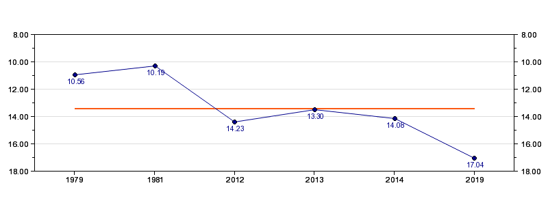 Antall deltagelser6 (i perioden 1979 - 2019)