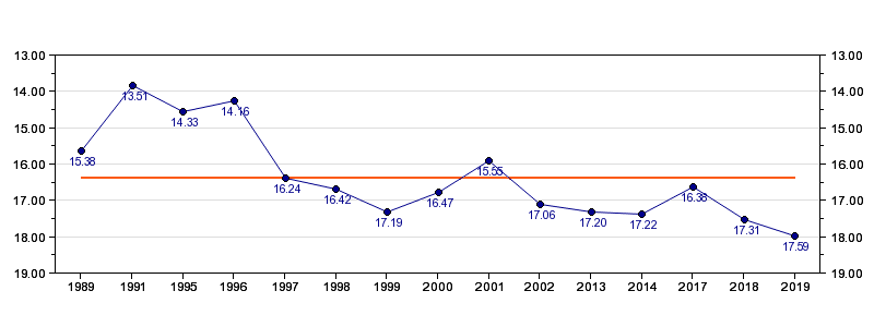 | Antall deltagelser | 15 (i perioden 1989 - 2019) |