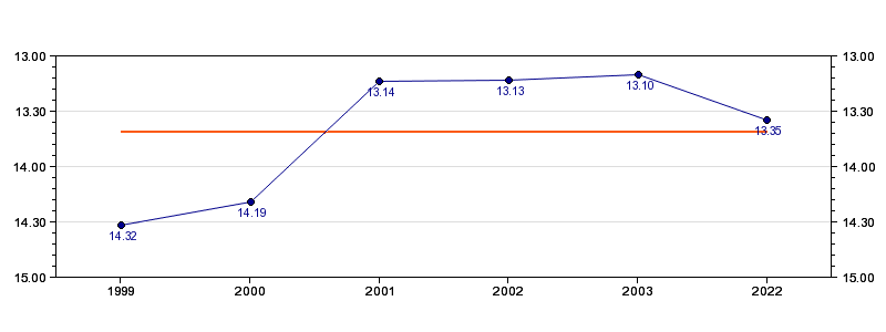 | Forrige tid | 13.35 (2022) |