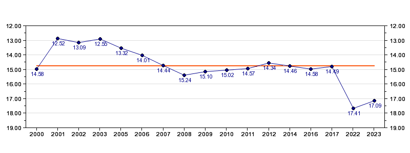 | Antall deltagelser | 17 (i perioden 2000 - 2023) |