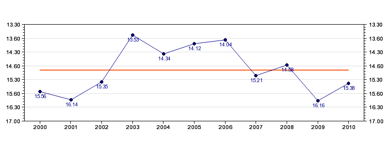 | Forrige tid | 15.38 (2010) |