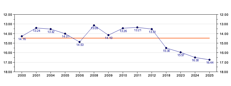 Antall deltagelser14 (i perioden 2000 - 2025)