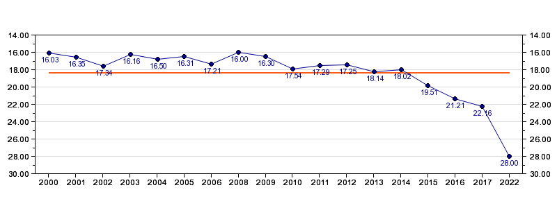 Antall deltagelser18 (i perioden 2000 - 2022)