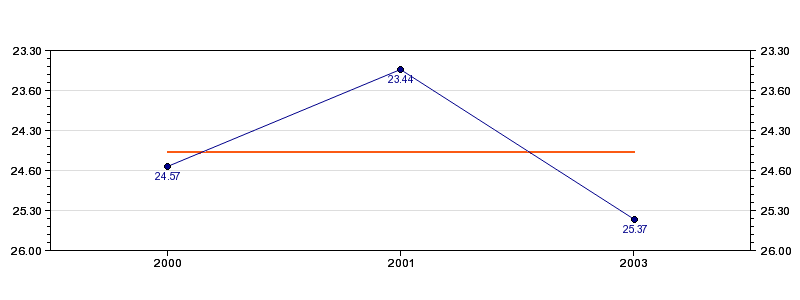 | Forrige tid | 25.37 (2003) |