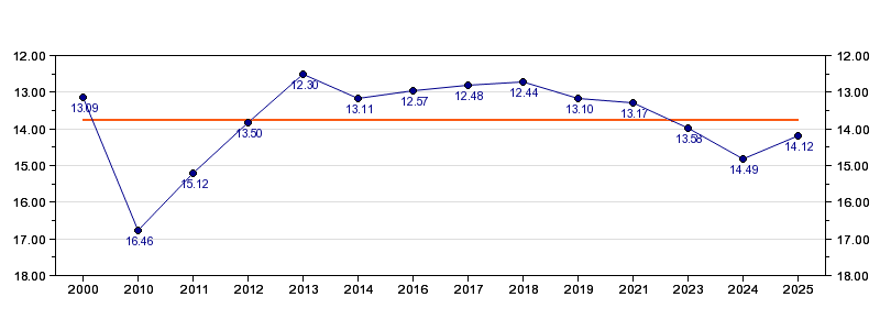 Antall deltagelser14 (i perioden 2000 - 2025)