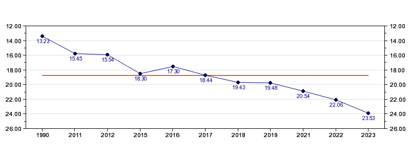 | Forrige tid | 23.53 (2023) |