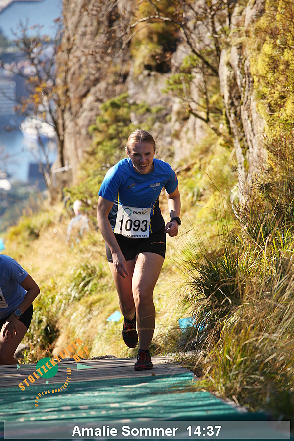Da Thorbjørn Ludvigsen satte rekord på 7.54 i 2016 hadde han serien 95-99-95-115 og en gjennomsnittlig vertikal hastighet på 2286 meter/time. Kristin Størmer Steira hadde serien 107-96-95-107 da hun satte damerekord på 9:35 i 2013 med en gjennomsnittlig vertikal hastighet på 1884 meter/time. Til sammenligning hadde verdensrekordløpene på en vertikal kilometer (per 1/8/2014) hastighet på henholdsvis 1967 meter/time og 1630 meter/time - men da ble det altså løpt mer enn 3 ganger så langt.
