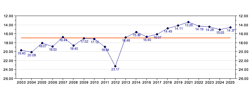 Antall deltagelser21 (i perioden 2003 - 2025)