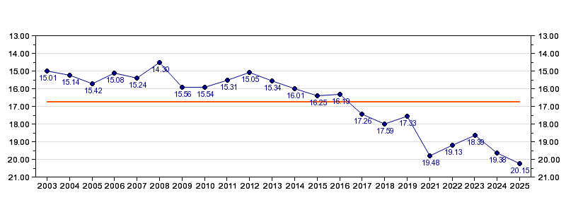 Antall deltagelser22 (i perioden 2003 - 2025)