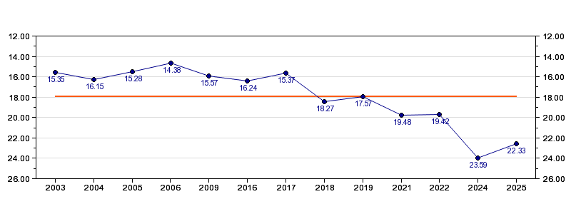 | Antall deltagelser | 13 (i perioden 2003 - 2025) |