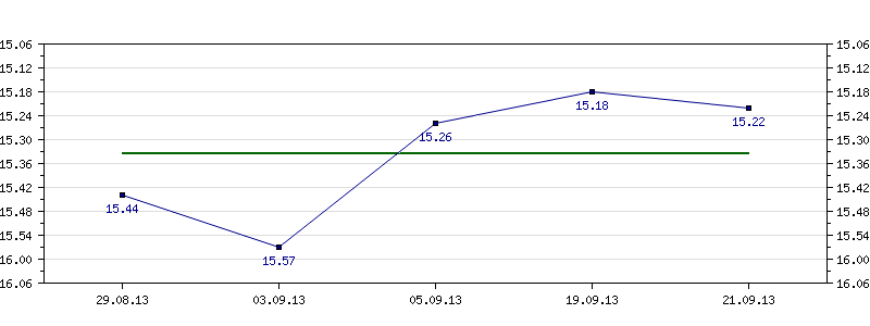| 29.08.2013 | 15.44 | 03.09.2013 | 15.57 | 05.09.2013 | 15.26 | 19.09.2013 | 15.18 | 21.09.2013 | 15.22 |