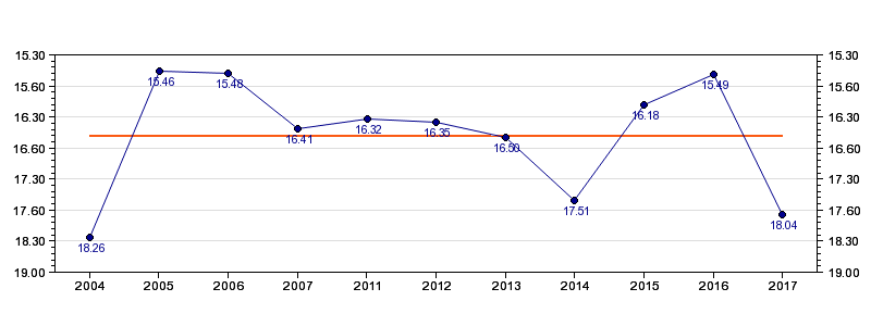 Antall deltagelser11 (i perioden 2004 - 2017)
